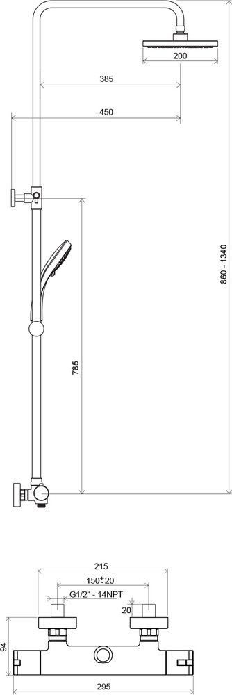 RAVAK Termo 300 TE 91 zuhanyoszlop termosztátos csapteleppel
